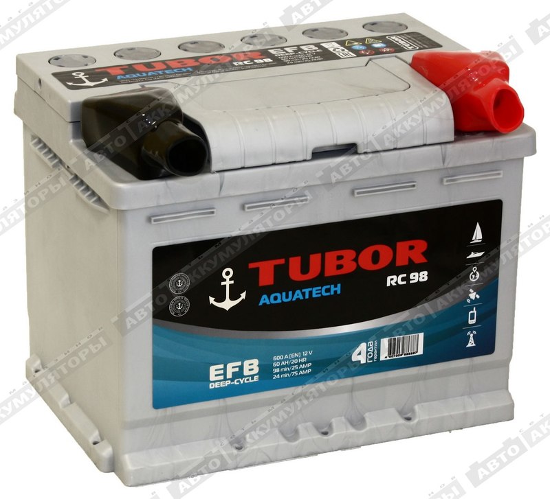 Аккумуляторы TUBOR Aquatech предназначены для использования в лодках, катерах и яхтах. Запатентованная крышка Double Deck делает батарею TUBOR Aquatech полностью герметичным и абсолютно безопасным аккумулятором. Применение новейшей технологии EFB позвоялет использовать аккумуляторы серии Aquatech как в стартерном, так и тяговом режиме - для запуска ДВС и питания электроприборов морской техники.