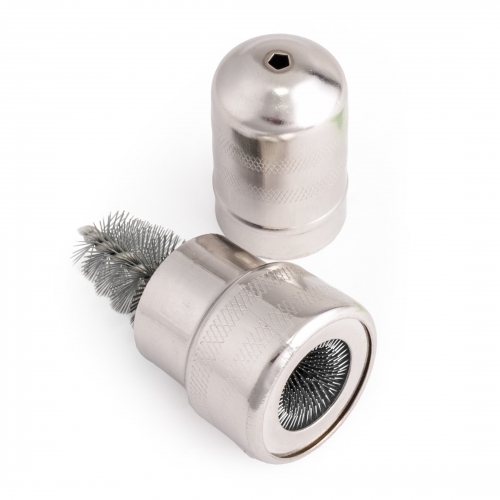 Металлическая щетка BAT/BRS-113 легко очищает клеммы и полюсные штыри аккумулятора от продуктов окисления. Щетка для очистки клемм аккумулятора состоит из двух частей. Внутренняя часть предназначена для чистки полюсных штырей АКБ, а наружняя для клемм проводки. Вес — 8 грамм.