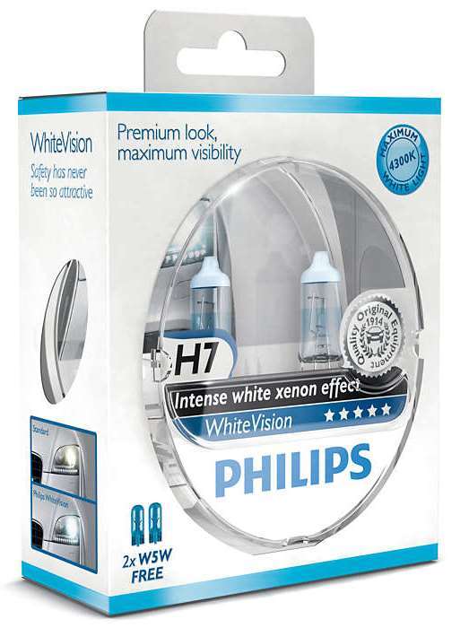 Лампы головного освещения Philips WhiteVision превосходят по характеристикам любые автомобильные лампы с белым светом с голубым оттенком. Это лучший выбор для водителей, которым не нужен компромисс между стилем и безопасностью. Обладая высокой цветовой температурой и стильным белым колпачком, лампы WhiteVision идеально подходят для головного освещения. Запатентованная технология покрытия Philips 3-го поколения впервые обеспечивает по-настоящему белый свет ламп WhiteVision и является шедевром эволюции.