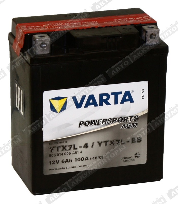 Уцененные мотоаккумуляторы Varta AGM 506 014 005 (YTX7L-BS) (У)