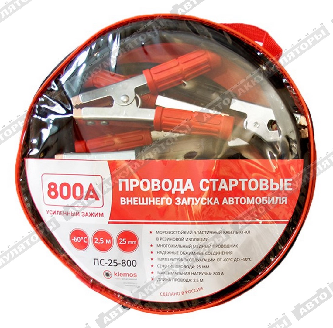 Стартерные кабели (провода) Klemos Провода стартовые 25 мм2; 2,5м (ПС-25-800)