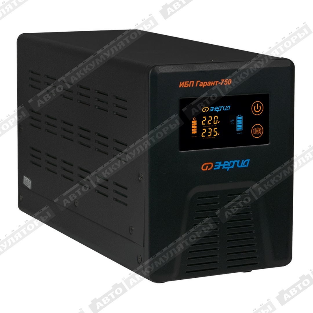 Энергия Гарант 750— инверторные преобразователи постоянного напряжение в переменное со встроенным релейным однофазным стабилизатором напряжения — это устройства, способные обеспечить электроприборам не только стабильное напряжение, но и бесперебойное качественное электроснабжение потребителей даже в случаях полного отключения питания. Кроме этого Инверторы «Энергия» серии ИБП Гарант могут выполнять функцию зарядного устройства для аккумуляторов.